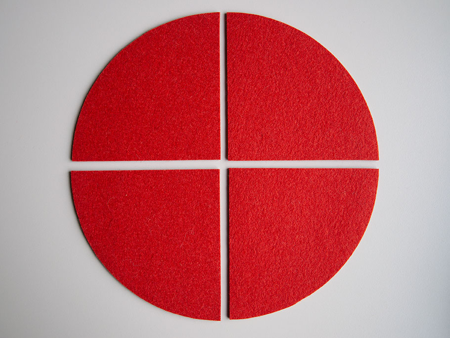Sie wählen Durchmesser, Farbe und Ausstattung – wir teilen den Kreis präzise für Sie in der Mitte. Das Ergebnis: zwei identische Filz Halbkreise, gleiche Farbe, gleiche Stärke. Jedes Paar wird in unserer Werkstatt nach Ihren Vorgaben individuell gefertigt.