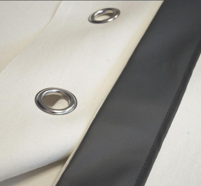 Option: Bühnenband in Filztasche – genähter Filzstreifen hinter dem Bühnenband verdeckt die Aufhängung, steift aber den Vorhang aus und mindert damit den Faltenwurf.